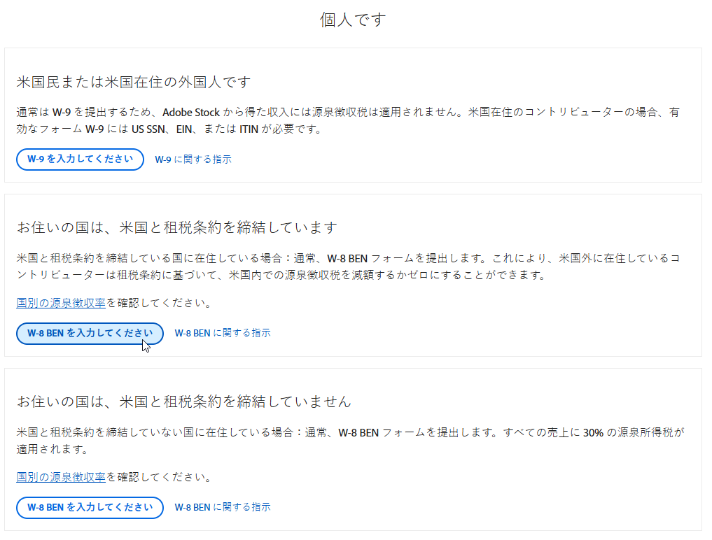 どれを選べばよいのか判断できず、W-9が米国向けであることですら理解できませんでした。