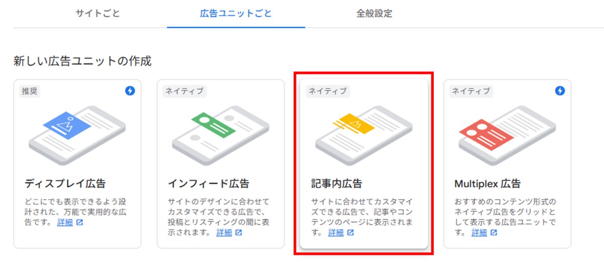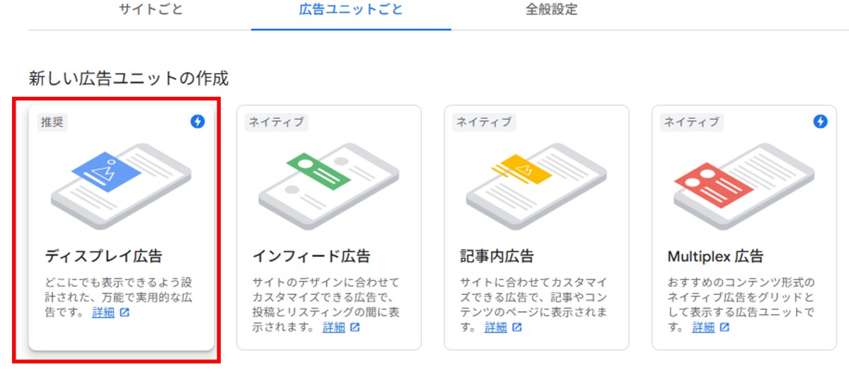 これらの広告は、Googleアドセンスの管理画面で「広告ユニットごと」に作成できます。