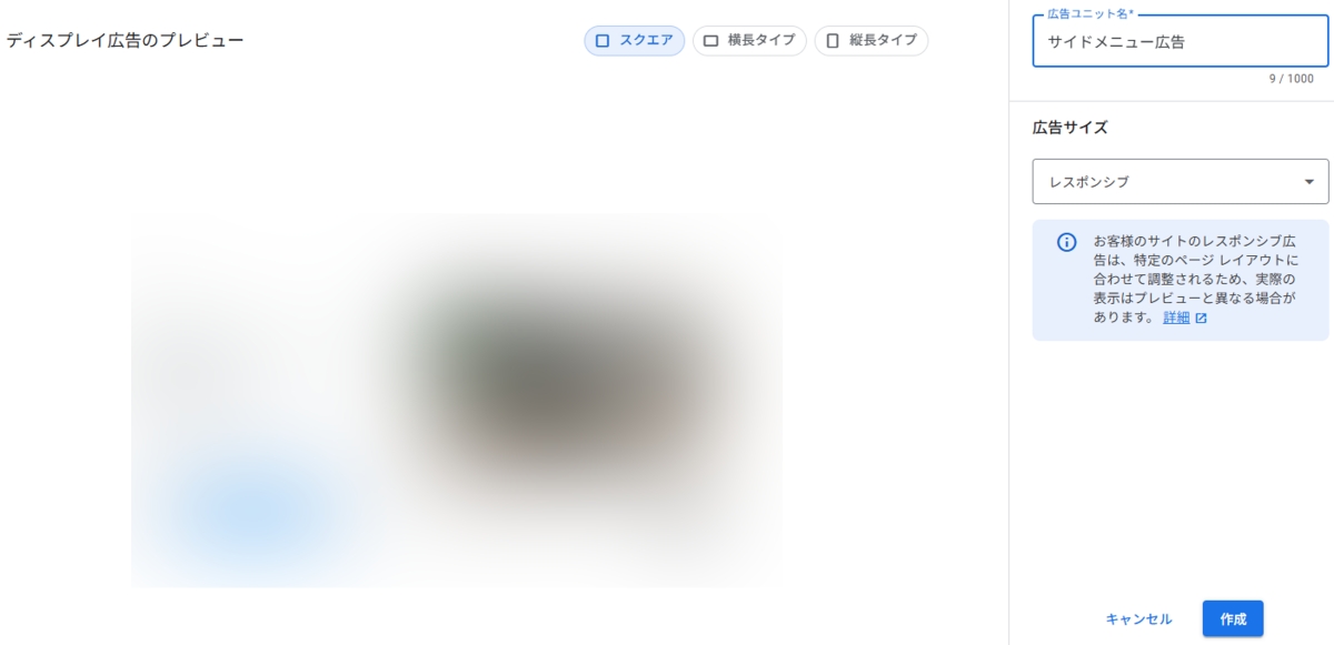 (プレビューにサンプルの広告が表示されるため、ぼかしを入れています。)