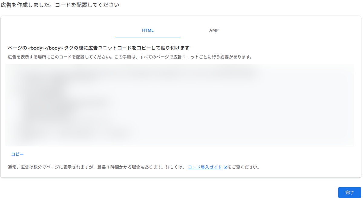 広告コードの作成・コピーはディスプレイ広告と同じ手順になるので、説明は省略します。