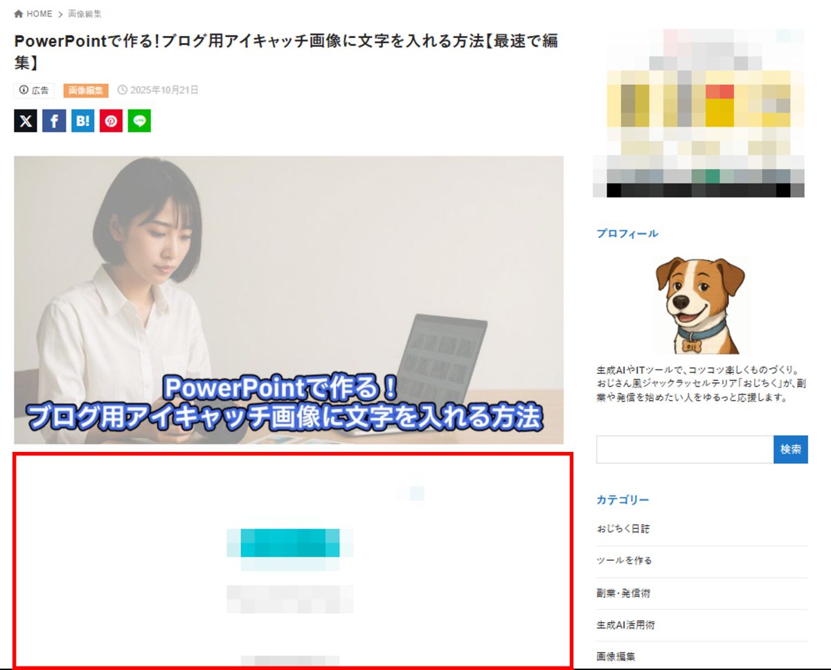 ウィジェットを使った場合、アイキャッチ画像の下に表示されます。
