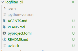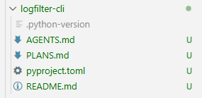 プロジェクトの作成後、logfilter-cli配下にAGENTS.mdとPLANS.mdを配置します。