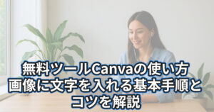 Canvaの使い方、画像に文字を入れる方法は次の記事で詳しく紹介しています。