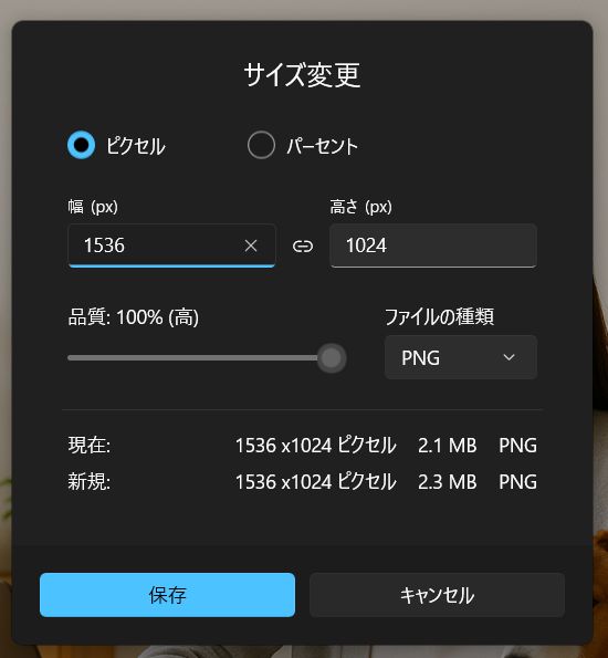 「最大サイズ」と指定しても、結果が1536×1024になることがあります。