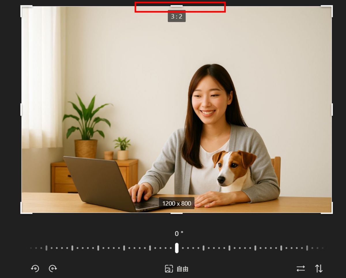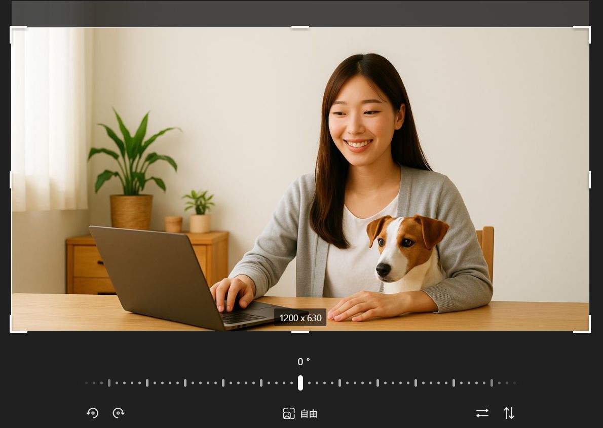 生成した画像はWindows11標準の「フォト」アプリで簡単にトリミングできます。