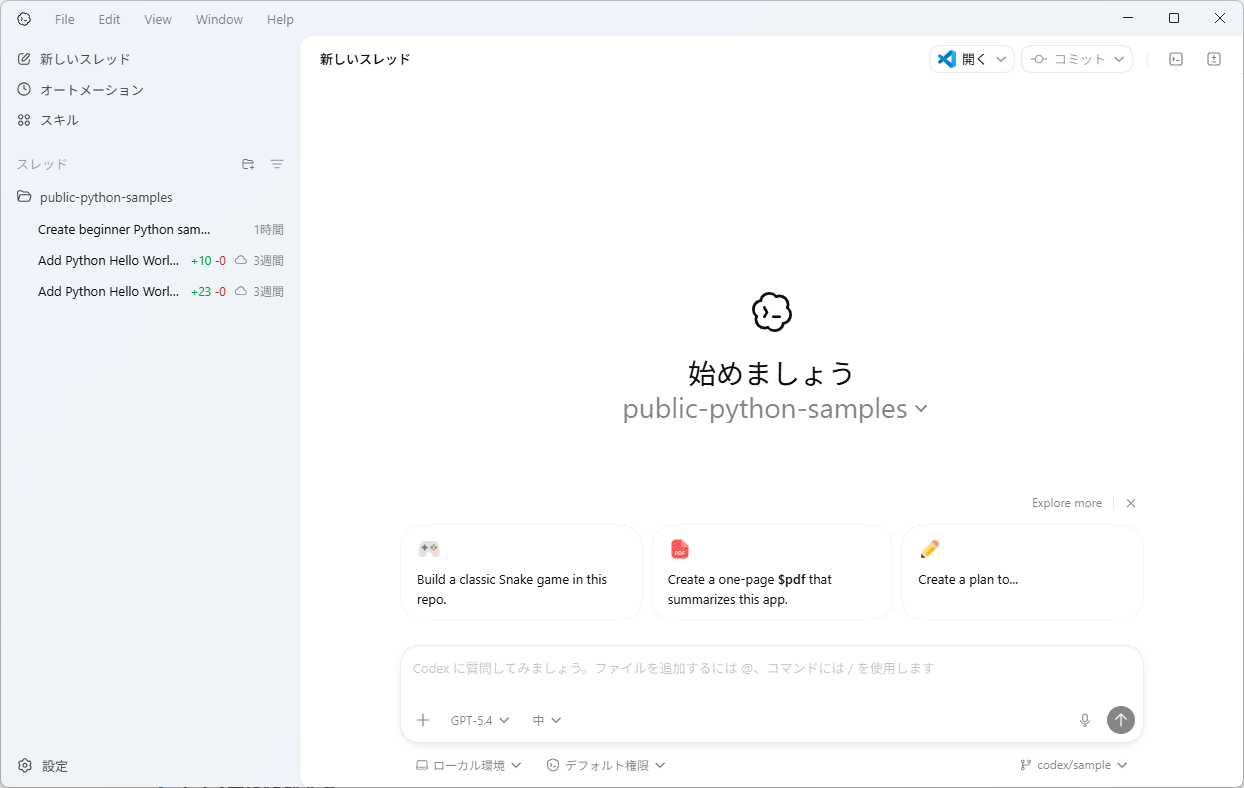 CodexにPythonコードを作成させる