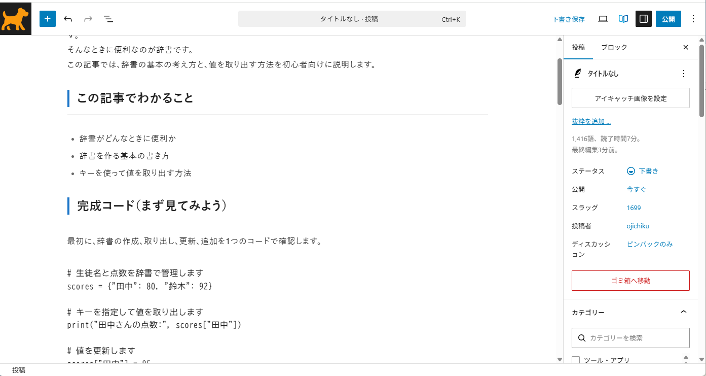 Python学習コンテンツを書き始めてしばらくすると、思った以上に重かったのがWordPressへの投稿作業でした。