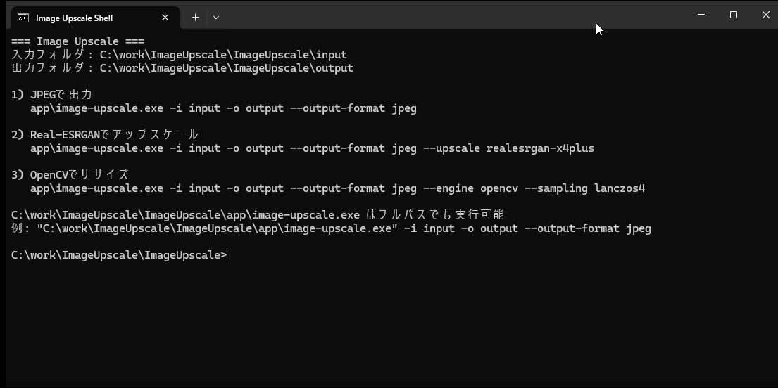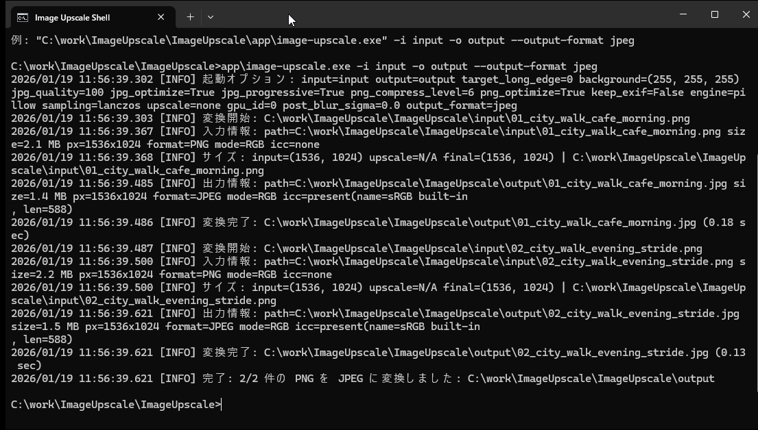 実行するとつぎのように表示されて画像を変換できます。