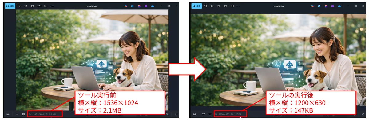 ツールを使用すると次のように変換前の画像がブログ用アイキャッチ画像を簡単に変換できます。
