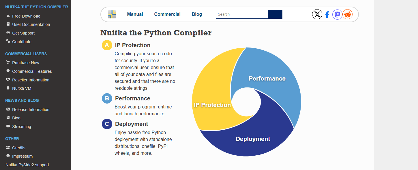 NuitkaとはPythonコードをC++に変換してコンパイルするツールです。