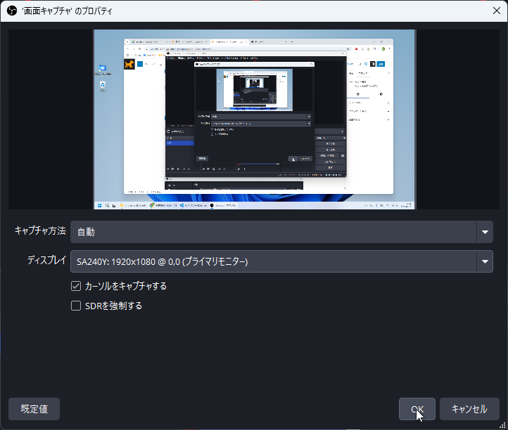 OBSで録画をすると、画面全体が映ってしまうことがあります。