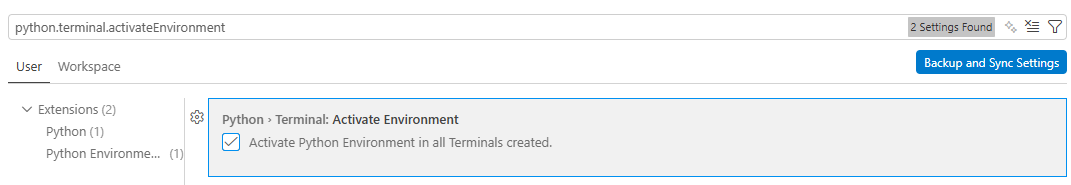 - python.terminal.activateEnvironment を検索する